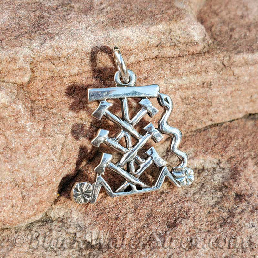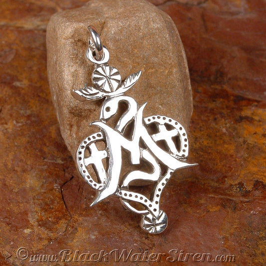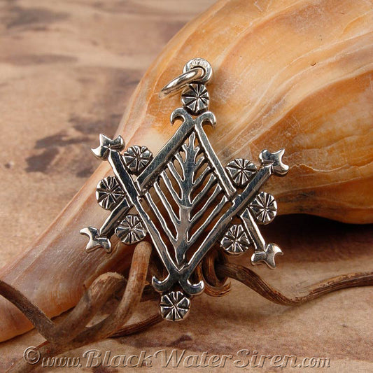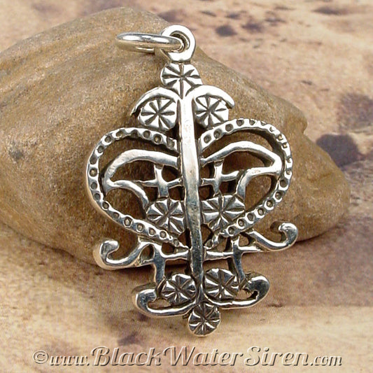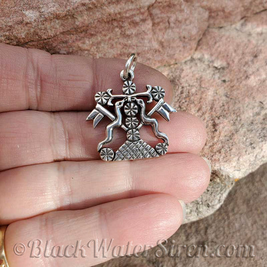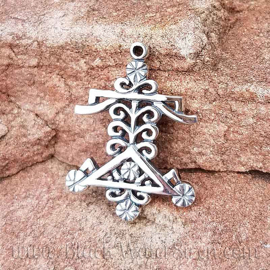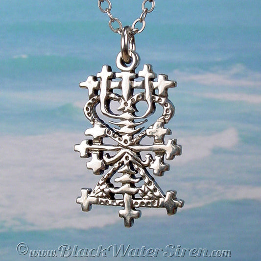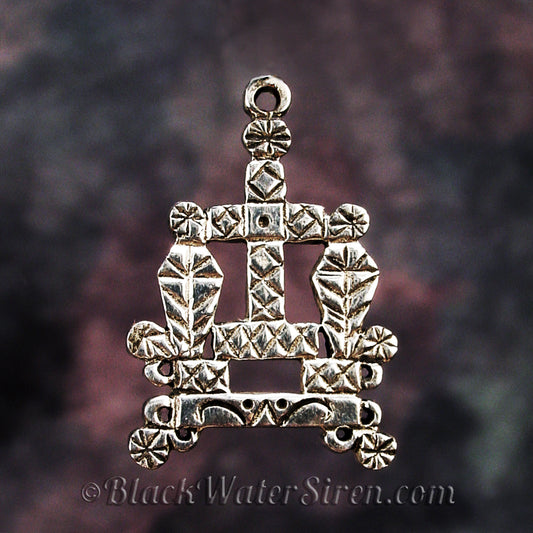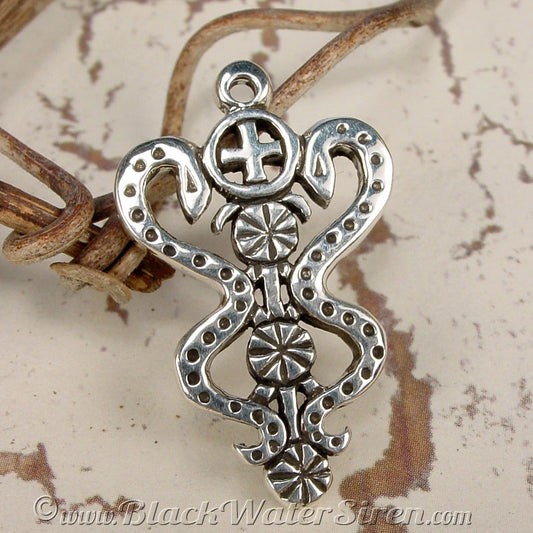 Voodoo Veve Charms worn as pendants or large charms on a bracelet, each charm is about an inch wide and cast in sterling silver, bronze, 10K or 14K gold.